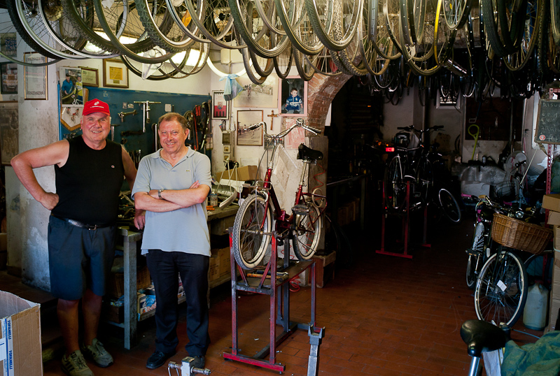 We also find a bicycle shop that has been in business since 1934, Lucca’s oldest. It is called Biclette Poli and is an amazing place to visit. The walls are covered with photos of the owners father Antonio Poli with cycling legends such as Fausto Coppi and Gino Bartali. It is a shrine to cycling and I pay homage by buying some jerseys!