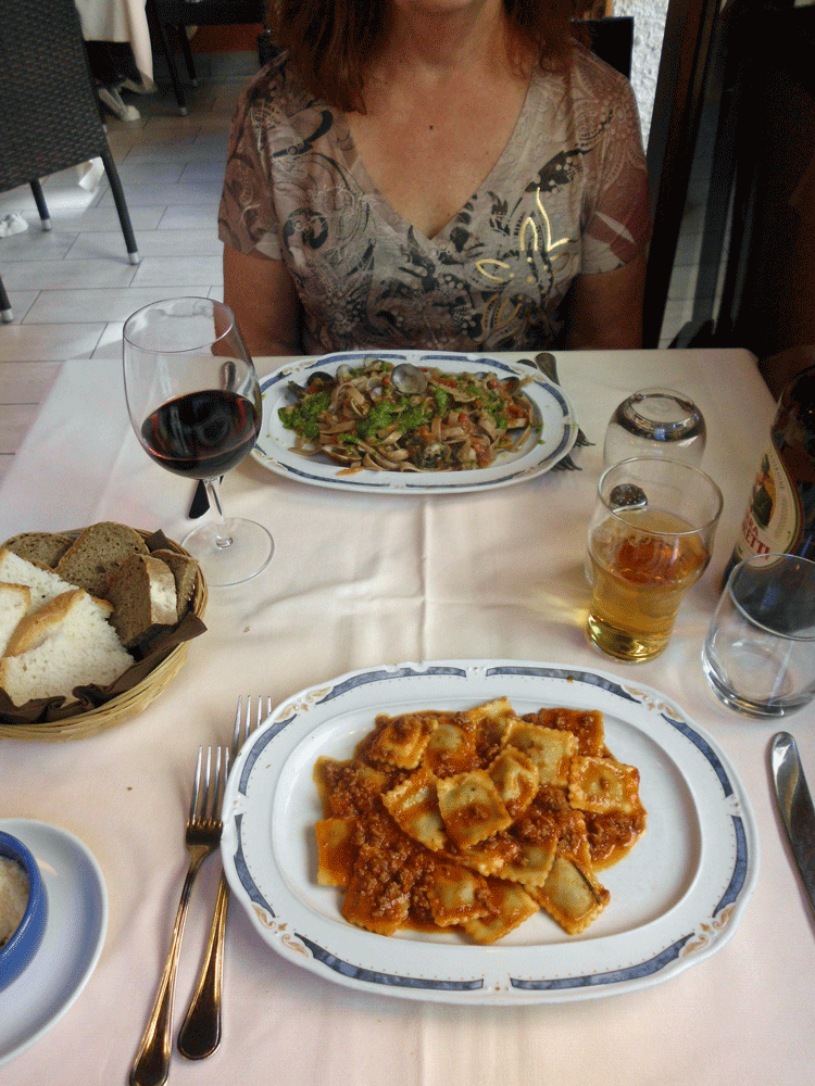 Once again we have a wonderful meal, pasta cooked perfectly, the sauce nicely seasoned, locally baked bread and wine grown and bottled in Riomaggiore. Our meal is at the same time too beautiful to eat and too good not to! Talk about getting a taste of the area!