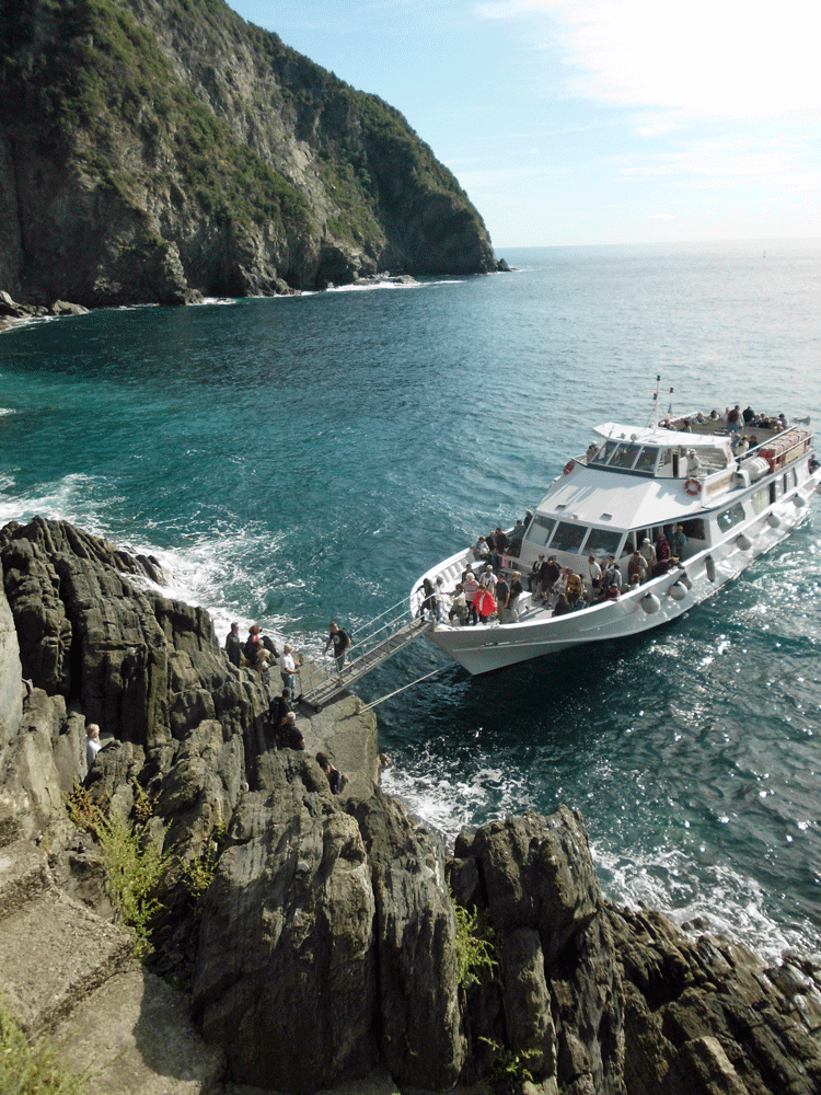There is a ferry service that connects the 5 villages of the Cinque Terre area but we will not be taking it today. It would be a spectacular boat ride but today we will be back on the moto. There is a road that winds above the villages on the hillside. It is such an unlikely place for a road but there are also houses and vineyards in unlikely places. Some of these are so difficult to reach that they have private little gas powered cog railways to access them. You see these at the side of the road with the rail going on the hillside to a house above or below.