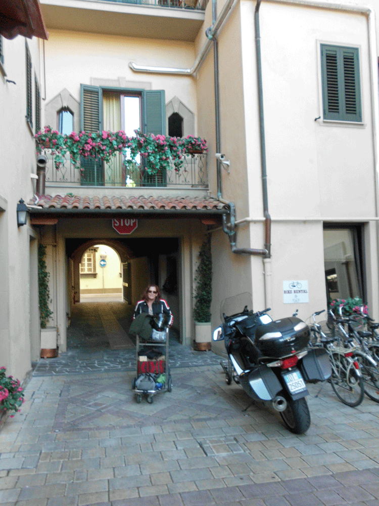 Okay here was our plan, jump on a plane and go ride a motorbike in Italy for a week or so. We made arrangements with Central Italy Motorcycle Tours to rent a bike and pick it up at their office in Pontedera, just outside of Pisa. They do group tours but also rent bikes for individual travel. The bike we rented was a 2010 BMW R1200RS which is a newer model of the same bike I ride at home. We were not going with a tour group, we were just renting the bike and going where we wanted. Here is a rough account of our adventure.