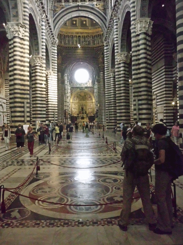 Siena. The Siena area was first settled around 900 BC but it wasnt until 1200 when the Siena Cathedral was built that the city gained its most remarkable feature. The marble floors and pillars along with the frescoes and library simply defy description. You could skip everything else and just see this cathedral and be satisfied with your visit.